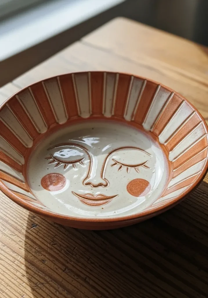 I find face designs like this so expressive and fun to create. Painting simple features inside a bowl instantly gives it personality without requiring complicated tools. It feels playful yet calming at the same time. I would happily spend an afternoon sketching different expressions and bringing them to life in clay.