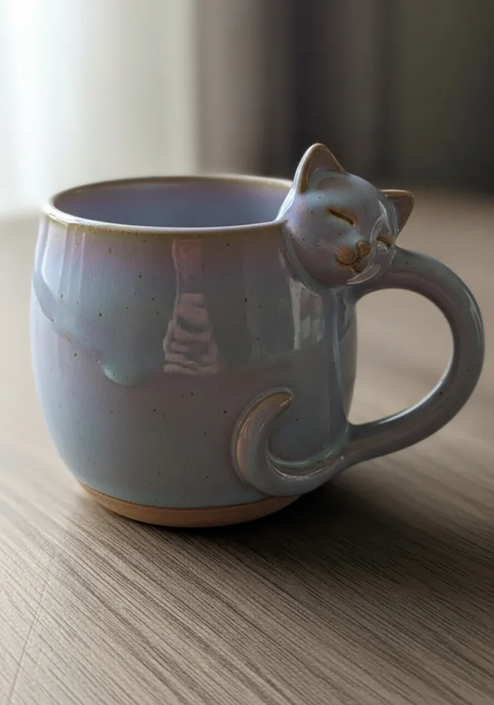 I absolutely love how this piece turns a simple mug into something with personality. It feels playful without being over the top, and that little cat detail makes it extra charming. This is the kind of project that feels relaxing to make since you can take your time shaping the features and letting the design come to life. It is also super rewarding because you end up with something both cute and actually useful for your daily coffee or tea moments.