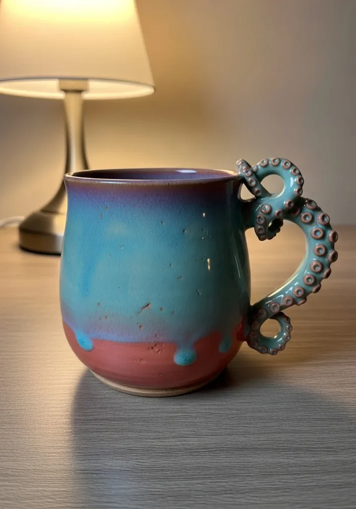 I adore experimenting with glaze once the form feels steady. This kind of mug helps build consistency in wall thickness and trimming. The color shift makes it look impressive while the structure stays beginner friendly.