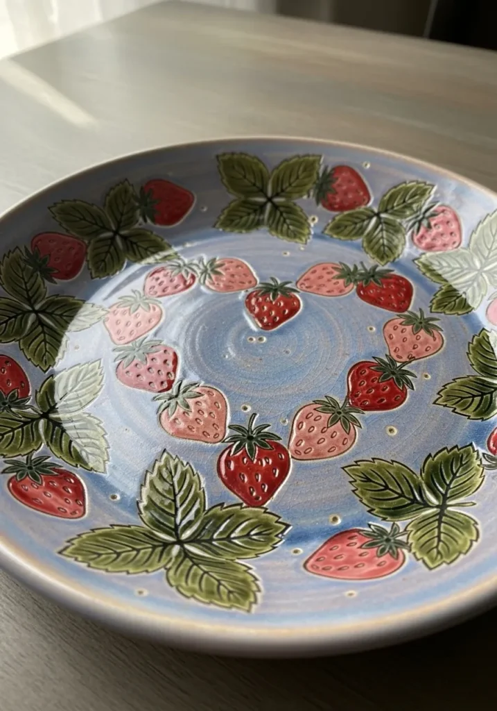 I love painting fruit motifs because they feel lighthearted and nostalgic. Repeating simple shapes like strawberries is easy to settle into. It is a great way to add charm without overthinking the design.