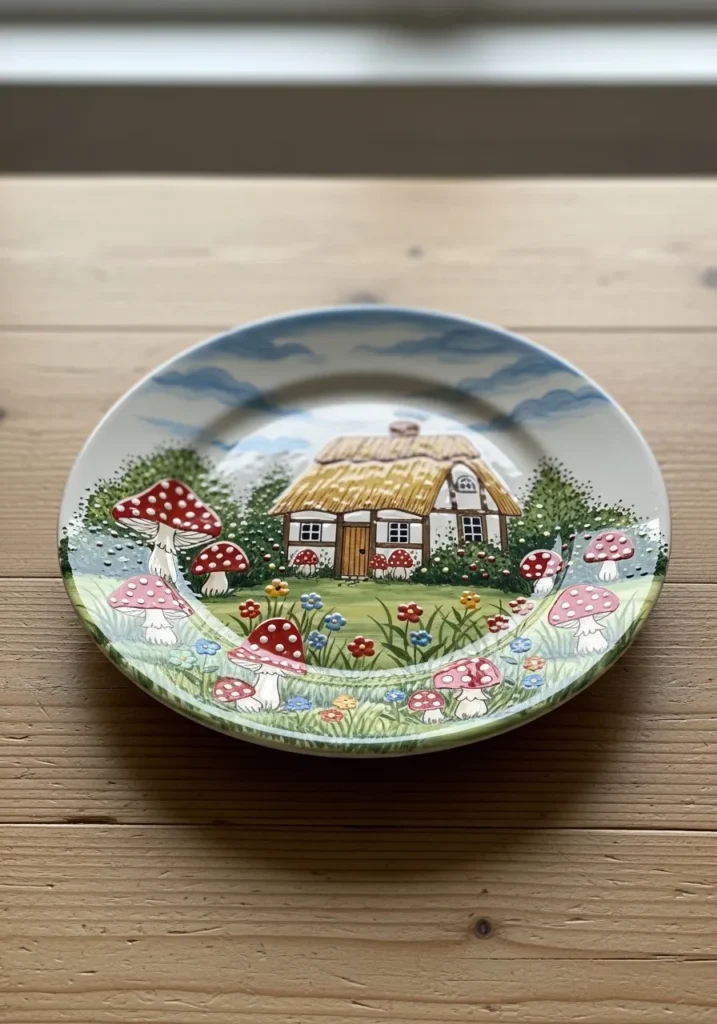 I love plates like this because painting little scenes feels slow and immersive. It is easy to build the design layer by layer without pressure. Every small detail adds personality, which makes the process feel playful and relaxed.