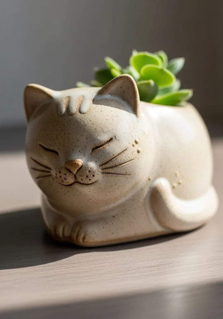 Minimalist Cat Planter With Succulent