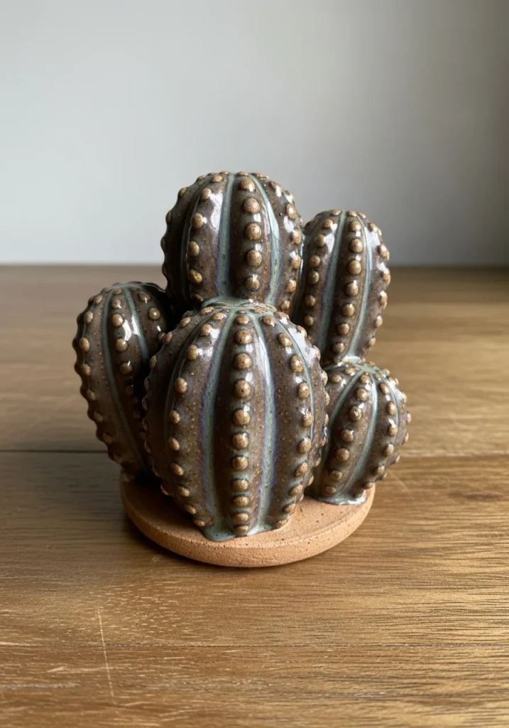 Clustered Cactus Pottery Sculpture