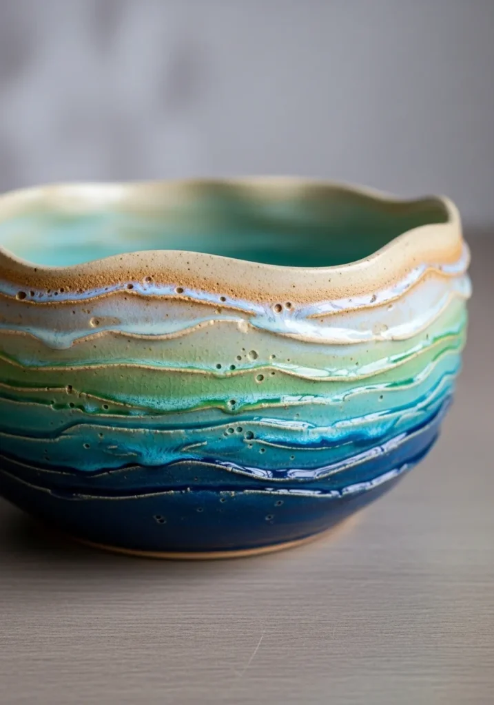 I am always drawn to pieces that play with glaze effects, and this one feels so soothing to look at. Blending colors like this can be surprisingly forgiving and so satisfying once fired. If you love beach inspired decor, this bowl is such a lovely project to experiment with. I would proudly display it on a shelf even if it never held anything at all.