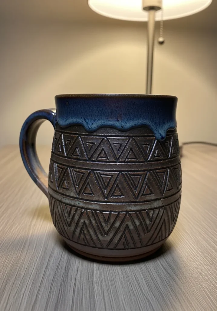 I love carving wave patterns like this because they instantly make a mug feel dynamic and alive. The rhythm of repeating curves is so relaxing to create. It is a great way to practice depth control while ending up with something that feels both artistic and cozy.