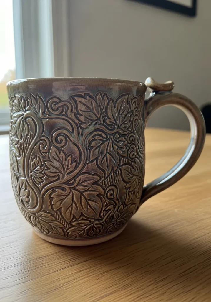 Intricate Vine Pattern Carved Mug