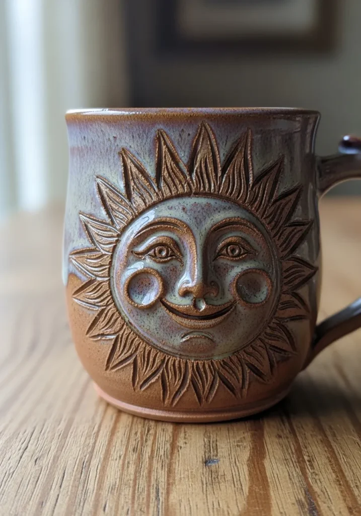 Radiant Sun Face Carved Mug