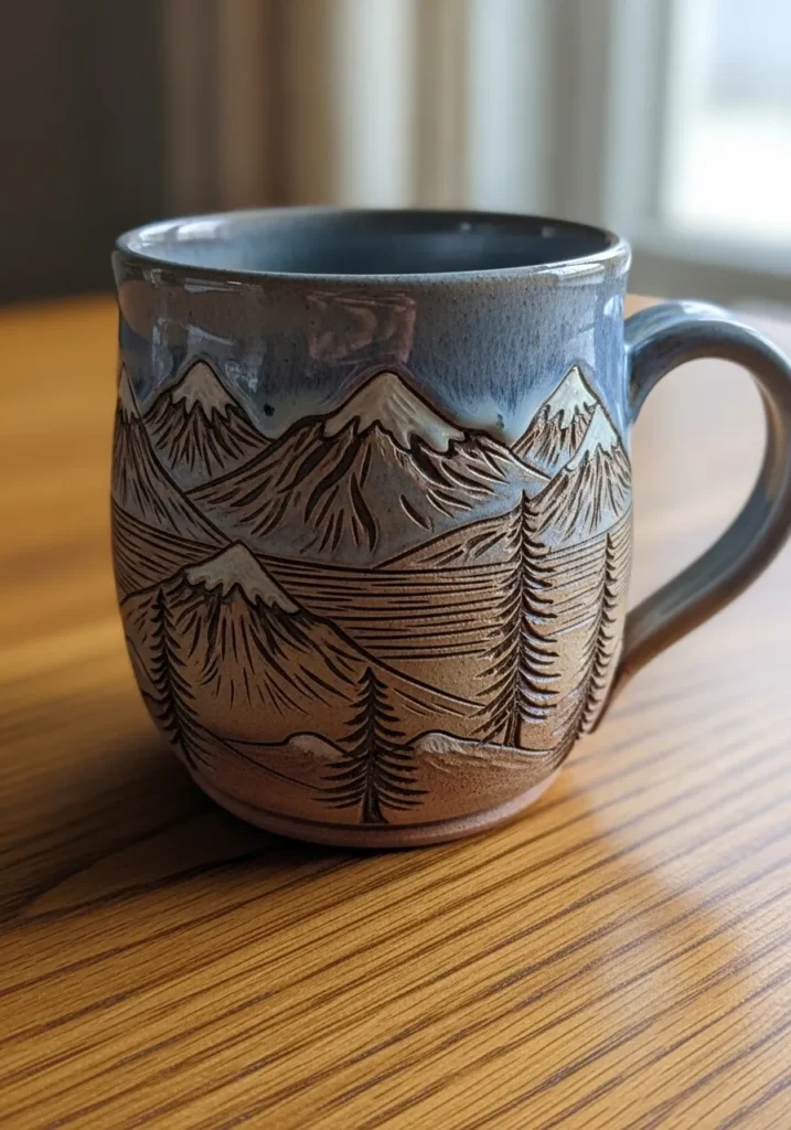 I always enjoy carving landscapes because they let me tell a story around the mug. It feels almost like drawing in the round. If you love nature inspired pieces, this texture idea is such a confident and timeless choice.