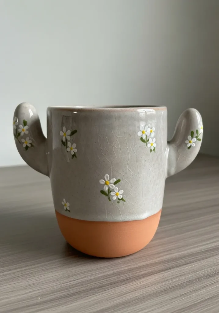 Floral pottery painting always makes me smile. Daisies are especially beginner friendly since they are made from simple petal strokes and tiny dots. I love how this style balances earthy tones with delicate details. It is such an easy way to create something cheerful that still feels elegant and grown up.