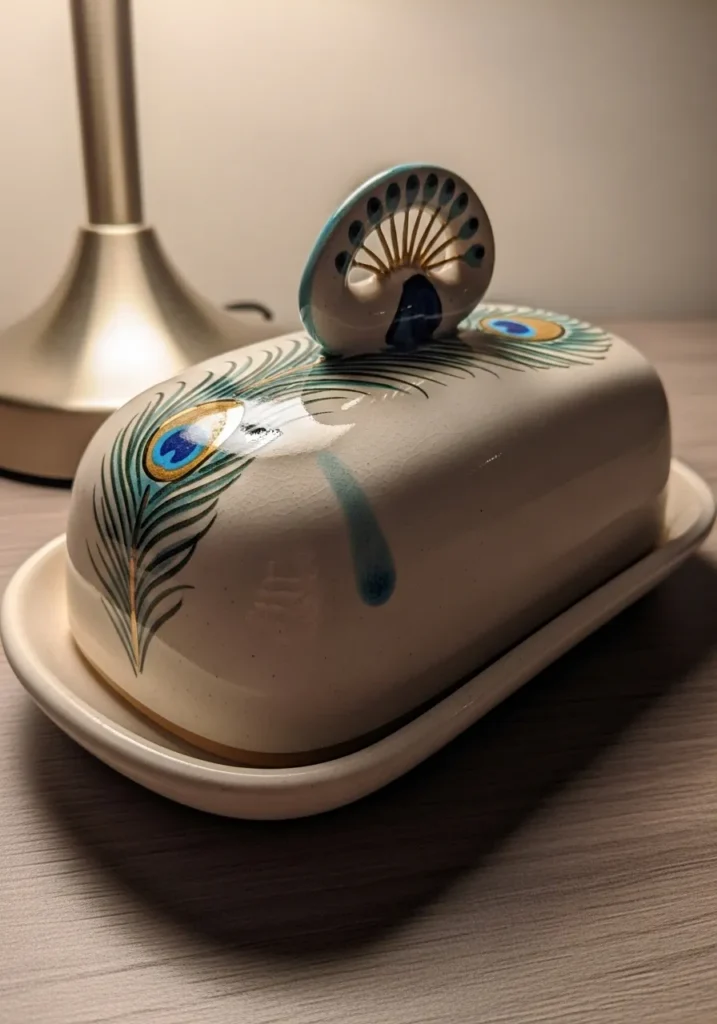 Peacock Feather Ceramic Butter Dish