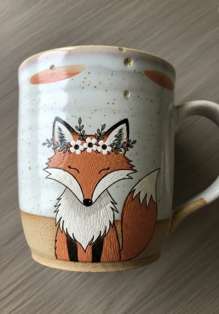I have such a soft spot for animal themed pottery like this. It feels cozy and personal, especially for morning coffee or tea. Painting a fox design is surprisingly simple when broken down into basic shapes, and adding tiny details like gold speckles makes it feel extra special. It is one of those projects that looks impressive but is still totally doable at home.