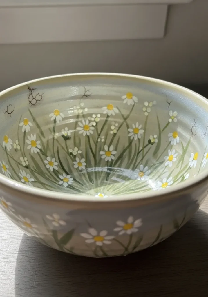 I think floral bowls like this are such a joy to make. Painting small daisies is repetitive in the best way, which makes the whole process feel calming. It is a sweet way to practice tiny brush details while still keeping the overall look soft and effortless.