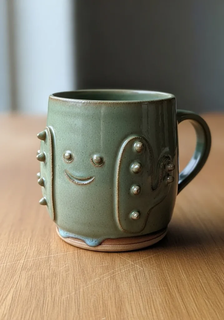 I love how easy this kind of mug feels to recreate while still looking super unique. The cactus shape is simple to build with basic clay skills, and those little raised dots are such a satisfying detail to add. It is one of those projects that turns an everyday item into something cheerful and a bit quirky. I can already imagine sipping coffee from this and smiling every time I pick it up.