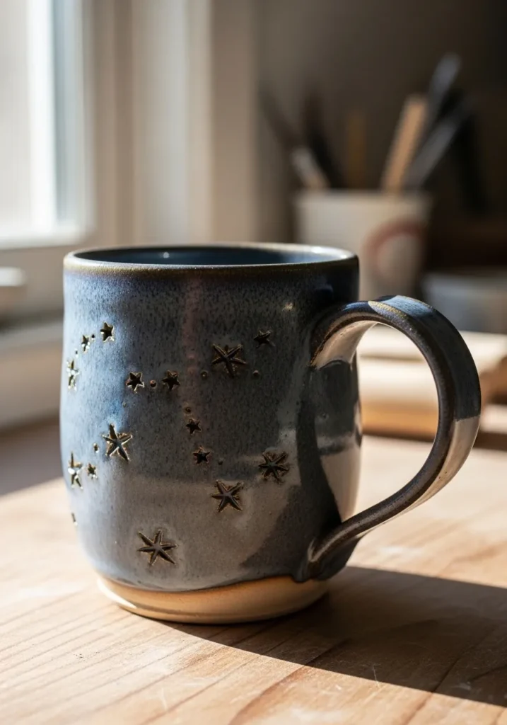 Decorating mugs like this feels relaxing and familiar. Adding small stamped details is easy and fun, and it makes the piece feel personal. It is a great project for calm studio days when I want something useful and creative.