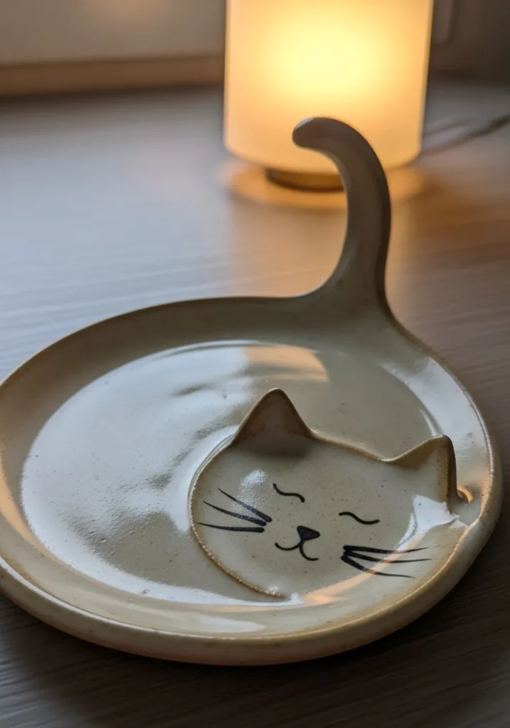 I adore how subtle details like the curled tail give the whole piece personality. The form starts with a simple round dish, so it feels approachable for beginners. It always looks lovely in soft natural light, especially with gold jewelry on top.