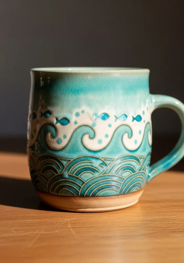 Painting wave patterns always makes me feel calm and inspired. The repetitive curves are simple enough for beginners, yet the final result looks beautifully detailed. I like how you can experiment with blending blues to create depth without needing complicated techniques. Sipping coffee from a mug like this feels like a tiny coastal escape.