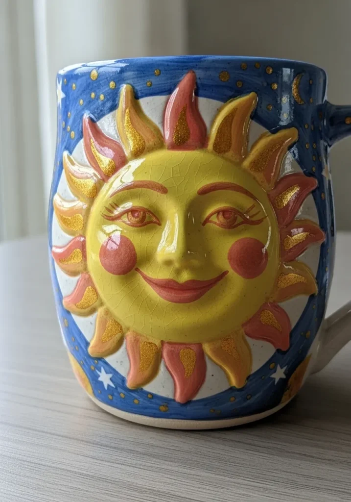 Painting a sun face always feels uplifting to me. Blending warm tones together is surprisingly satisfying, and the expressive features give the piece so much personality. It is a creative project that looks detailed but is actually very approachable. I can imagine starting the day with coffee in this mug and instantly feeling more energized.